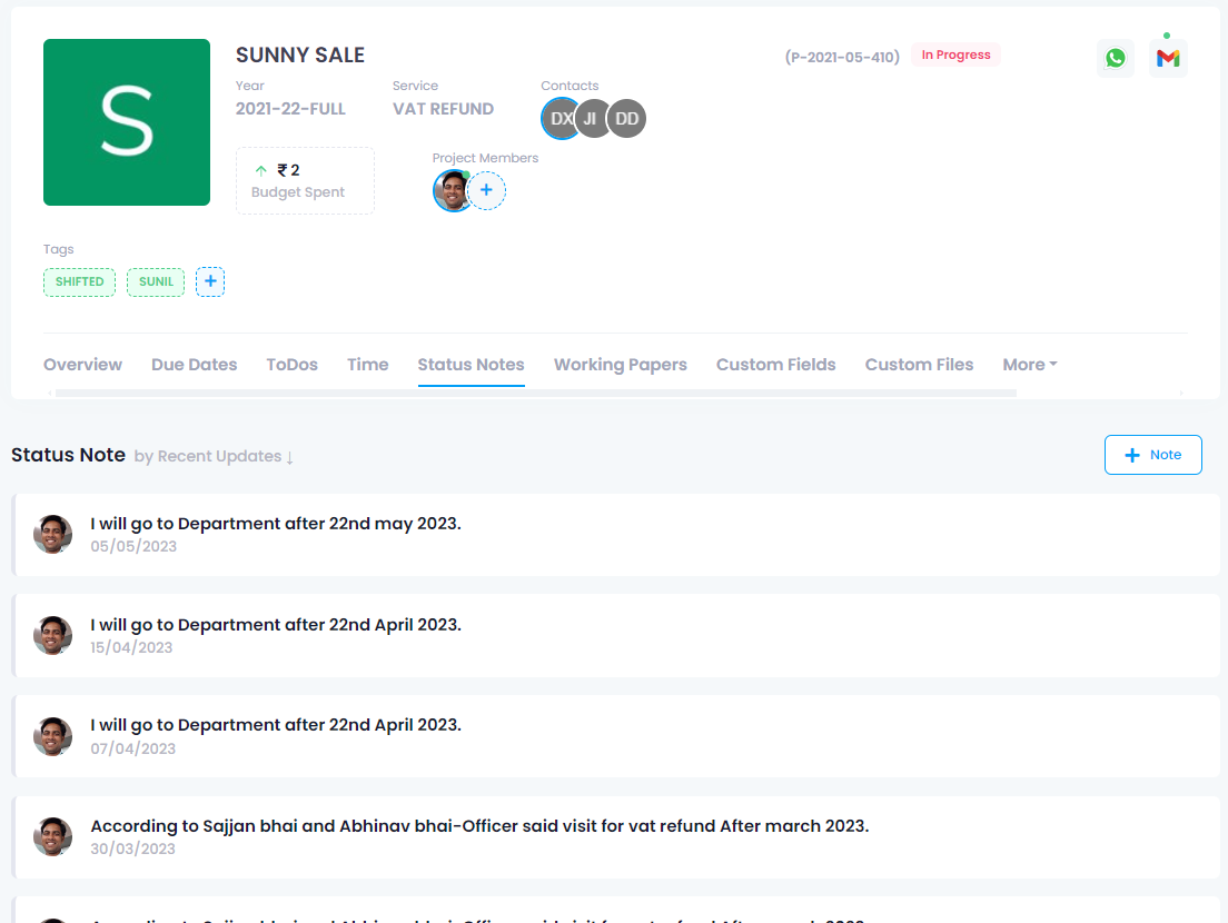 Role and Service based Project Management with Live Status Reporting, Fully Featured Automated Project / Task Creatiion and Allotment with Notes, Todos, Files, Email, Whatsapp all included